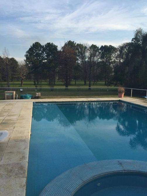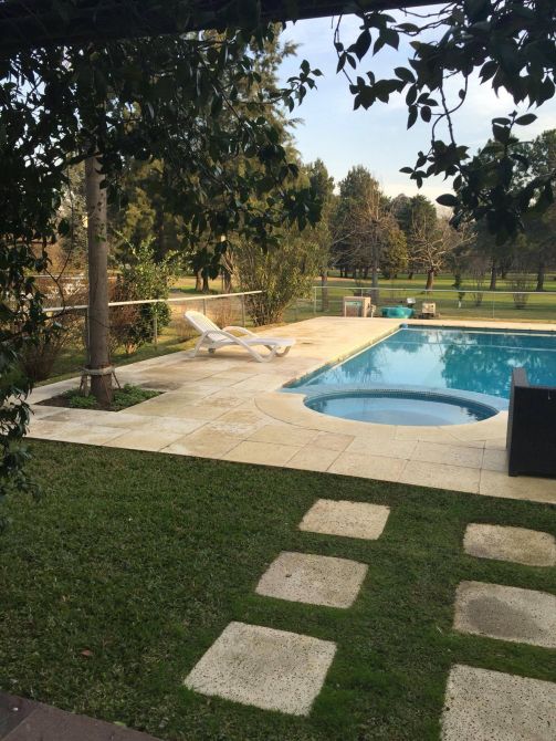 CASA EN VENTA IMPECABLE, EXCELENTE CONSTRUCCION, CON PISCINA CLIMATIZADA CON YACUZZI, VISTA GOLF Y AL BOSQUE. CUENTA CON CUATRO DORMITORIOS Y TRES BAÑOS, UNO EN SUITE PRINCIPAL,CON BALCON,calefaccion central,quincho cerrado con parrilla, permuta por propiedad en longchamps sobre asfalto con dos dormitorios en buena ubicacion con diferencia y facilidades